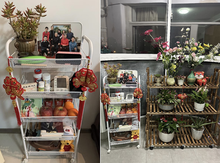 To address the issue of disorganized placement and inconvenience in accessing daily-use items for the elderly, a small cart with wheels was designed. The cart consists of five tiers, each serving a specific purpose: 1. First layer: Place a family photo, commonly used medications, and reading glasses. The family photo allows the elderly to see the warmth of their family and feel surrounded by love, helping to prevent Alzheimer's disease; medications are placed in an easily visible location for timely intake; reading glasses are conveniently accessible for daily reading. Additionally, include a potted green plant to add vitality and cheerfulness. 2. Second Floor: Equipped with smart devices such as Tmall Genie and electronic alarms. The Tmall Genie features a large screen for displaying time, allowing voice-activated time announcements, music playback, weather updates, and more. It also supports practical functions like voice calls, appliance control, and alarm setting, greatly facilitating daily life for the elderly and enabling them to easily access information and manage home appliances. 3. Third Layer: Store books that the elderly frequently read to satisfy their daily reading interests and make them easily accessible. Install a smoke alarm to promptly detect any emergencies such as fires. Place a small night light at the top to prevent the risk of falling out of bed in the dark. 4. Fourth Level: Place a waist massager and blood pressure monitor. Given that the elderly are prone to back and waist pain, the massager can help alleviate discomfort at any time, while the blood pressure monitor allows them to regularly check their blood pressure and monitor their health condition. 5. Fifth Level: Place snacks that the elderly enjoy while drinking tea. Seniors often sip tea and chat during leisure time, and having snacks within easy reach enhances the comfort of these pleasant moments. Additionally, decorate the cart with festive ornaments and a teddy bear toy that carries joyful memories. Seeing it can evoke cherished moments, warm the heart, and effectively help prevent Alzheimer's disease. |